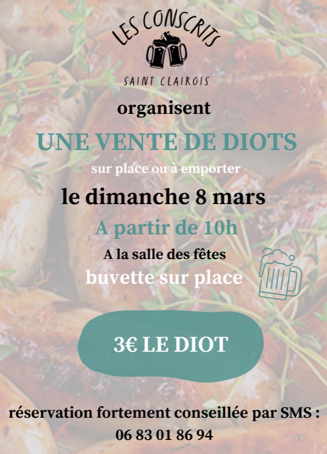 Les Conscrits Saint Clairois organise une vente de diots :