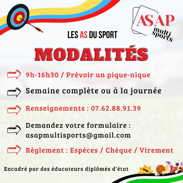 Les inscriptions se font par mail : asapmultisports@gmail.com
