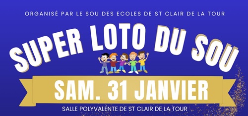 Le traditionnel LOTO du Sou des Écoles de ST CLAIR DE LA TOUR aura lieu le samedi 31 janvier 2026 à la salle polyvalente.