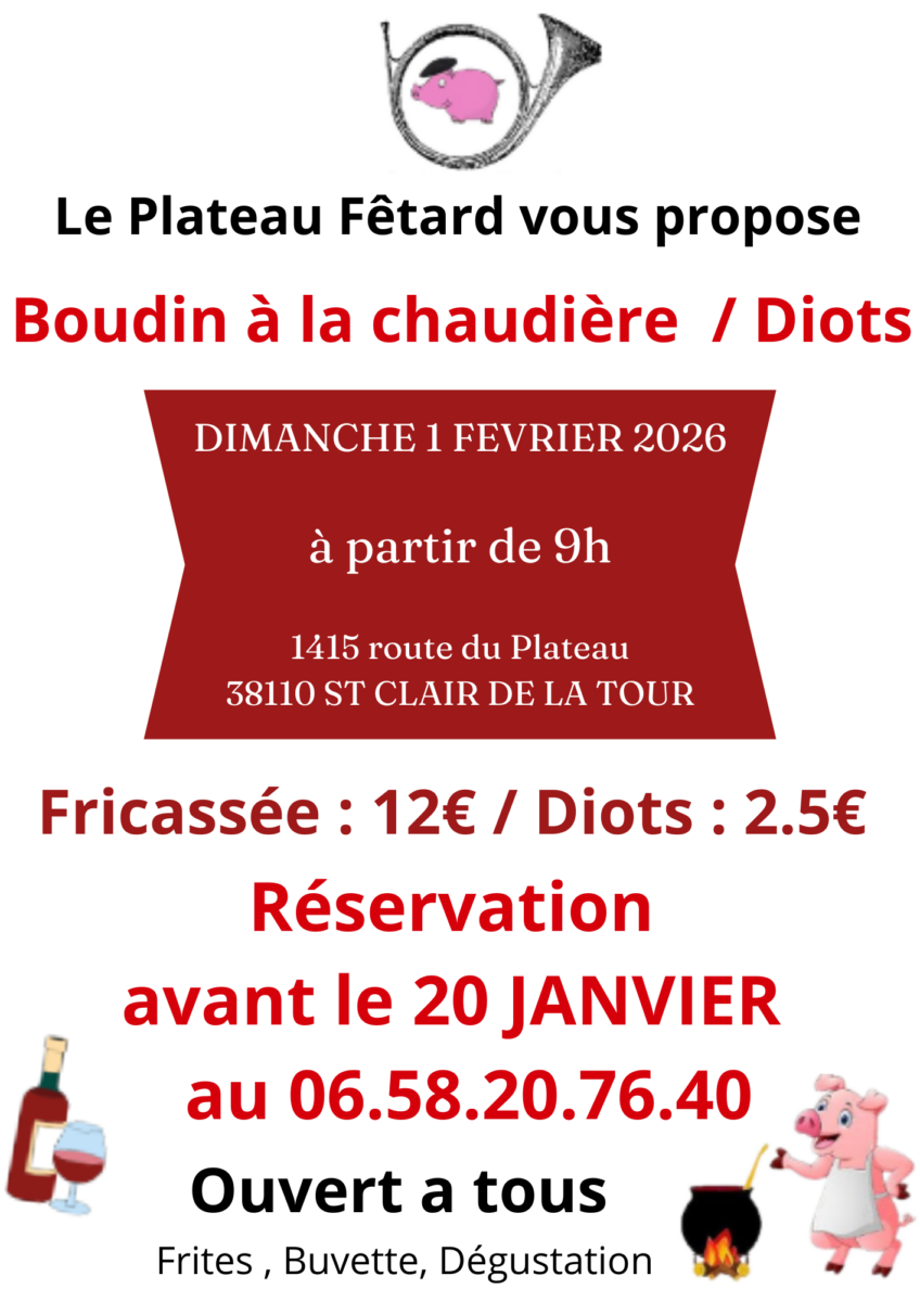 L’association du Plateau Fêtard vous convie à sa traditionnelle vente de boudin à la chaudière / diots