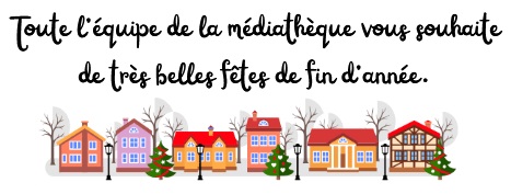 La médiathèque fermera le samedi 20 décembre à 12h et sera ravie de vous accueillir à nouveau le mercredi 7 janvier à 10h, selon ses horaires habituels :