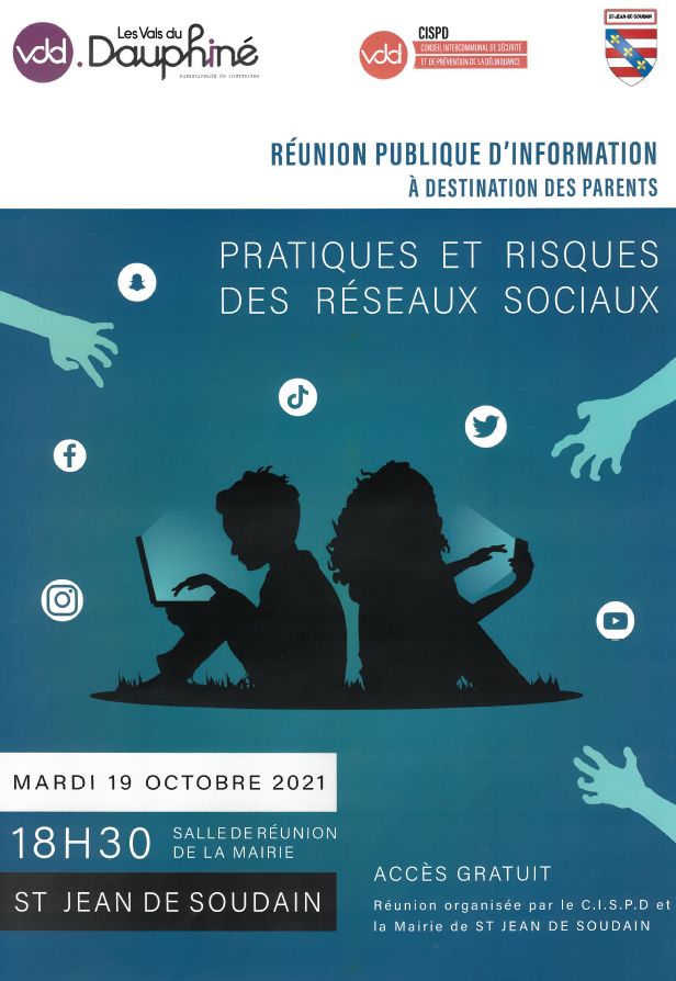 Le CISPD des Vals du Dauphiné et la mairie de Saint Jean de Soudain organisent une réunion publique à destination des parents sur les pratiques et les risques des réseaux sociaux.