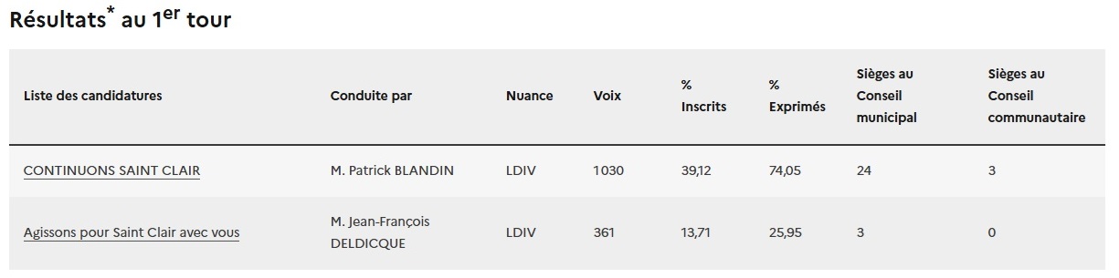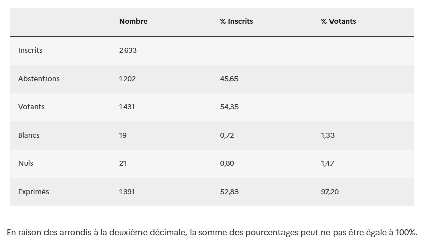 Les résultats du scrutin des élections municipales dans la commune sont les suivants :