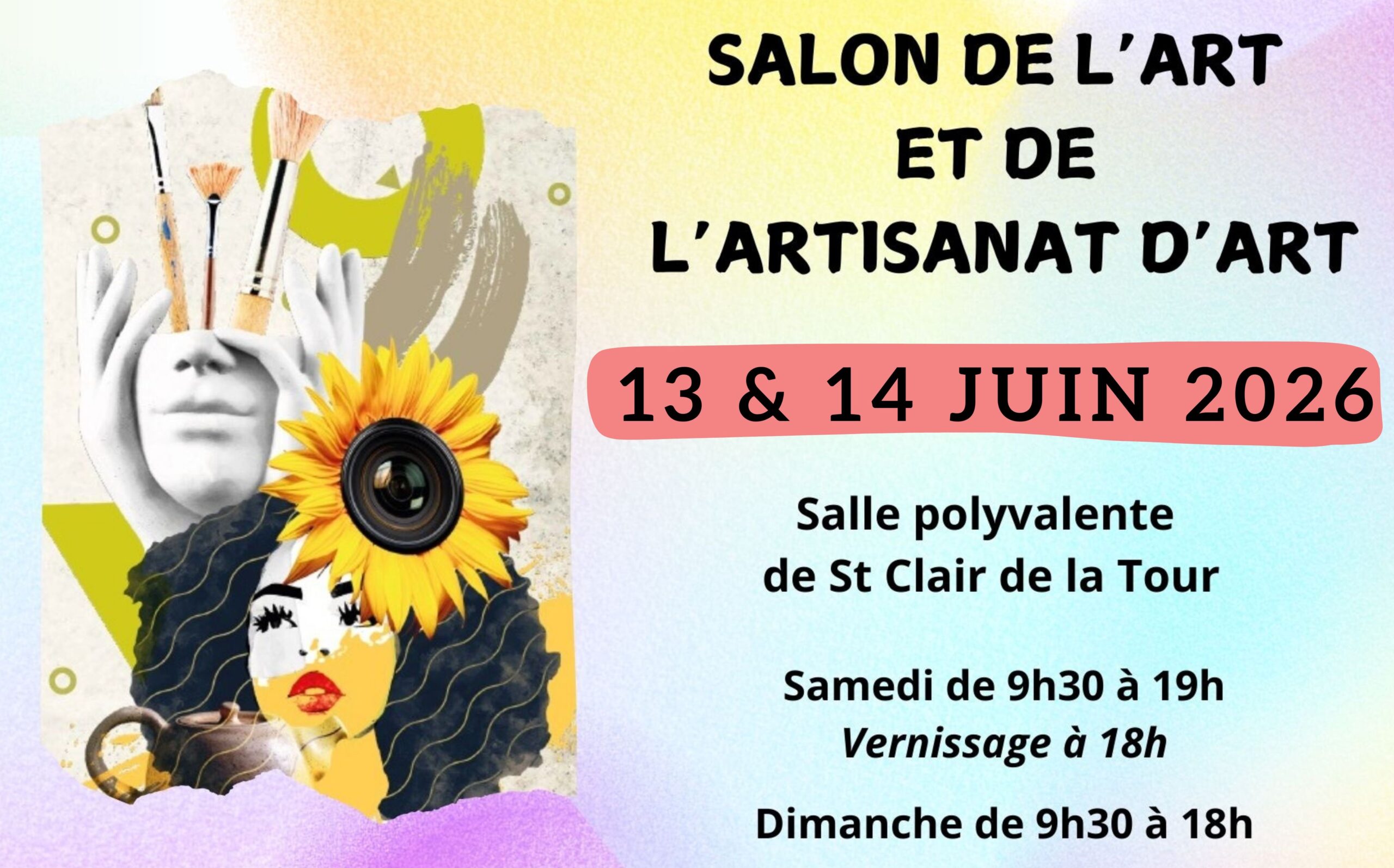 ➡️ Rejoignez-nous pour le Salon de l’Art qui se tiendra à la salle polyvalente de Saint Clair de la Tour, les 13 et 14 juin, dans une ambiance chaleureuse et conviviale.