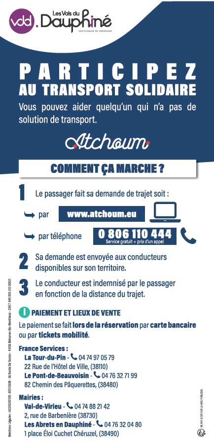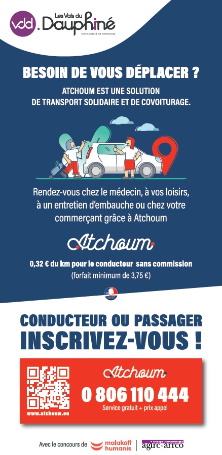 Pour encourager la solidarité et simplifier les trajets sur le territoire des Vals du Dauphiné, Atchoum met en relation des passagers et des conducteurs prêts à rendre service.